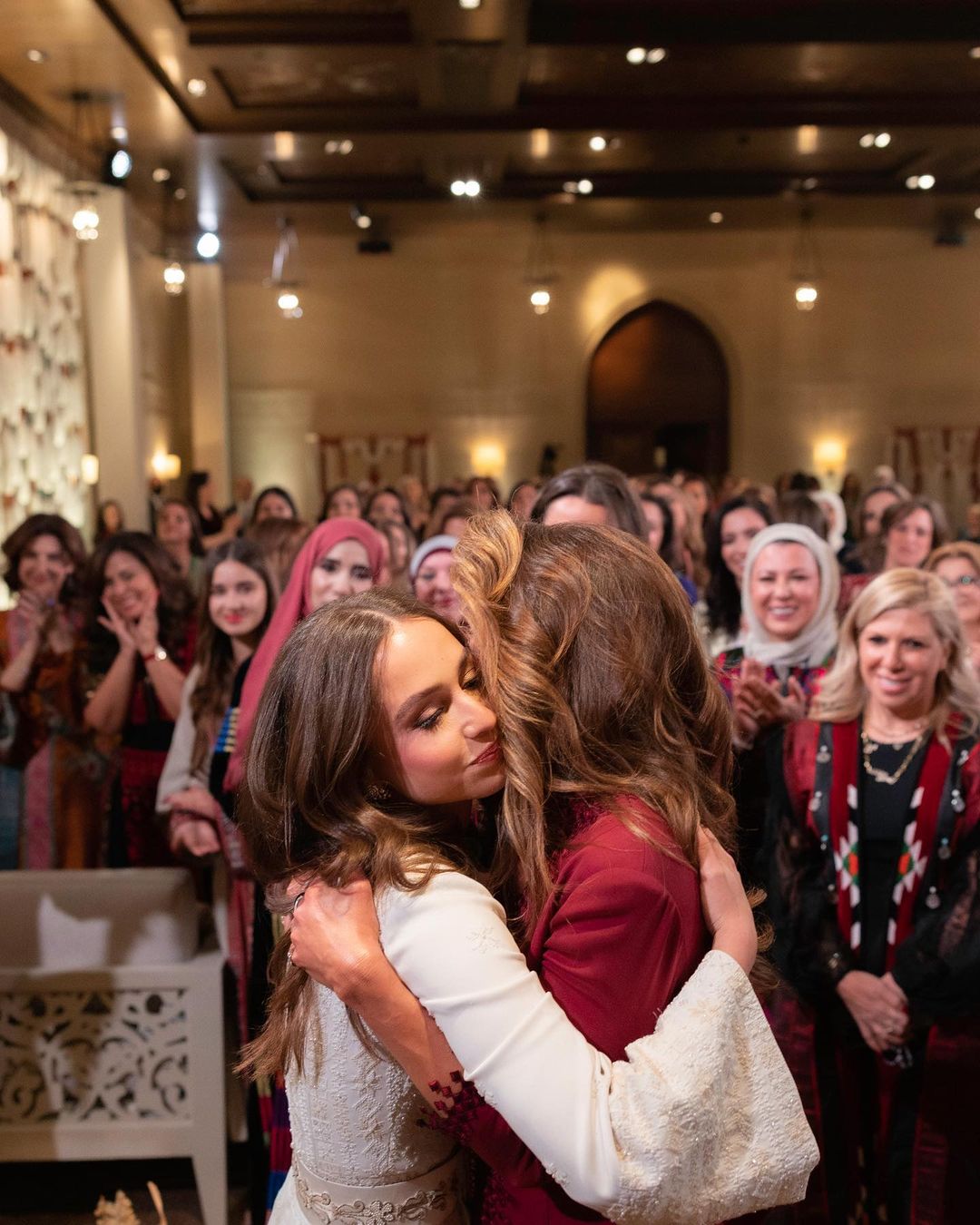 صورتان حاكتا هذه العلاقة الخاصة التي تربط الأم بابنتها، الأولى ظهرت في حفلة الحناء والثانية في حفل الزفاف، صورتا معانقة الأميرة إيمان لوالدتها كتعبير عن شكر لا حدود له لدور الأم الكبير في حياتها والذي توّج في هذه اللحظة المنتظرة.