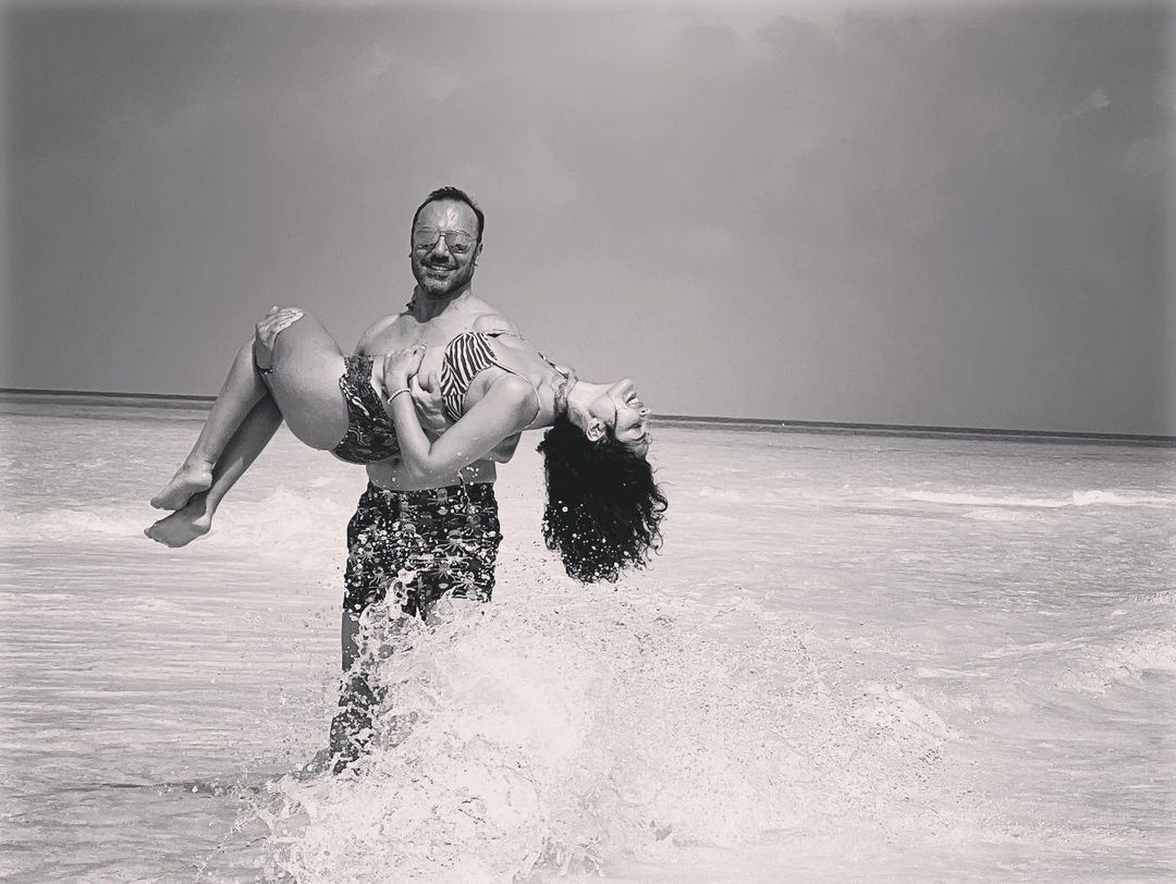 الممثلة نادين نسيب نجيم وخطيبها من رحلتهما في المالديف (الصورة من حساب نجيم في إنستغرام).