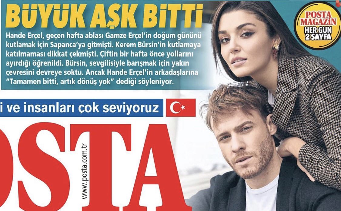 ضجّت المواقع التركية اليوم بخبر انفصال الثنائي الأكثر شعبية هاندا أرتشيل وكرم بورسين، وذكرت صحيفة "حريات" أنّ الانفصال حصل قبل أسبوع.