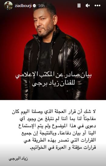 ونشر مكتبه الإعلامي بياناً جاء فيه: "أبلغنا المحامي جان قيقانو أنّ محكمة الاستئناف كرّست بموجب حكم صدر عنها بتاريخ اليوم حقّ زياد برجي بأداء ونشر أغنية "وبطير" بعدما قضت بوقف تنفيذ قرار قاضي الأمور المستعجلة في المتن الذي كان قد حجب عنه هذا الحقّ سابقاً".