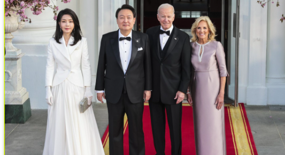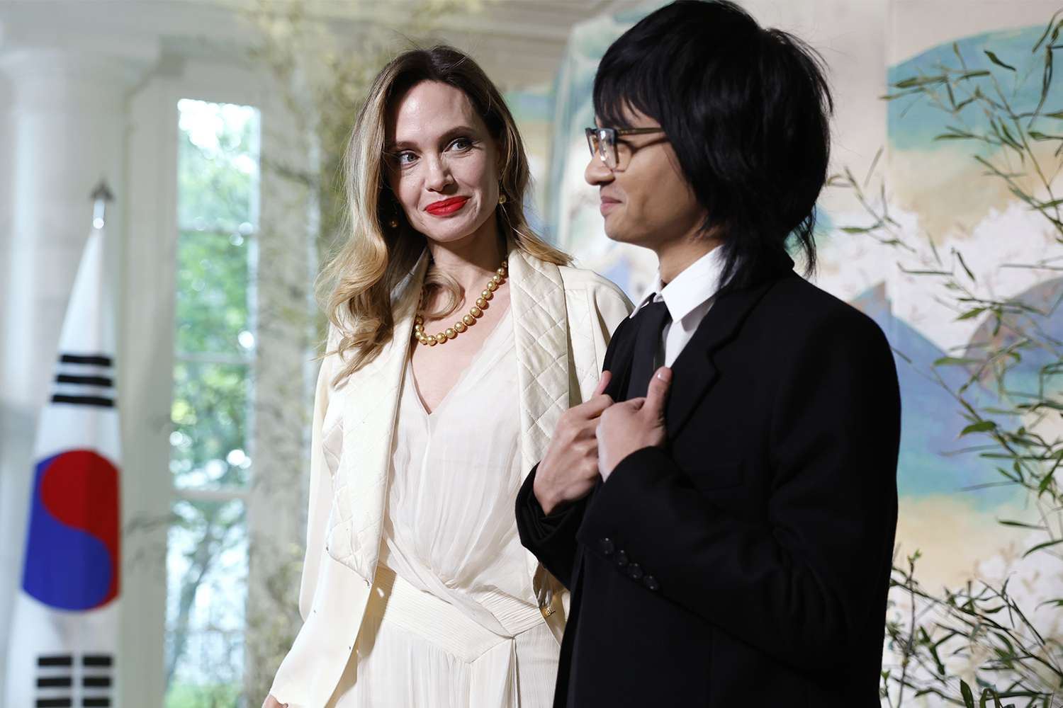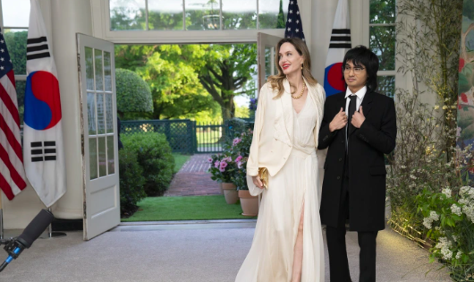 حضرت النجمة العالمية أنجلينا جولي مع ابنها مادوكس يوم أمس الأربعاء، العشاء الذي نظمه البيت الأبيض لاستضافة رئيس كوريا الجنوبية يون سوك يول وزوجته كيم كيون هي.