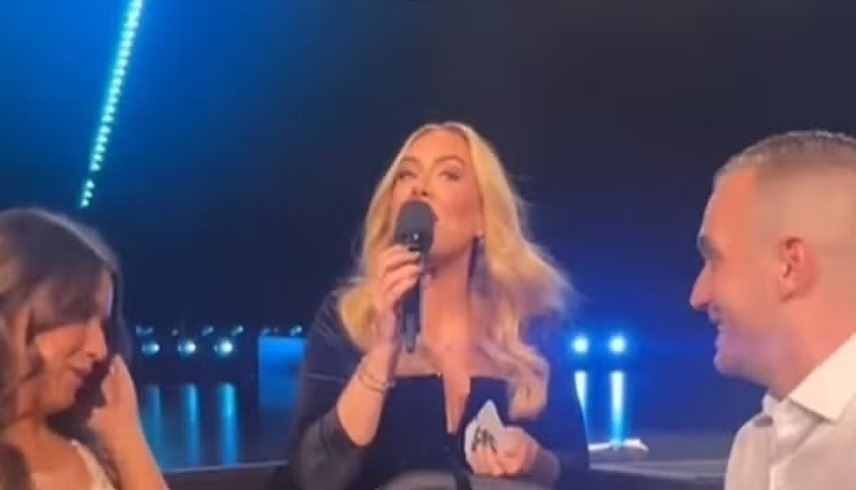 انتشر عبر وسائل التواصل فيديو للمغنية العالمية أديل بينما تساعد اثنين من معجبيها في إعلان جنس طفلهما على خشبة المسرح في لاس فيغاس.