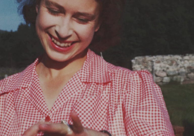 وتضمّنت اللقطات أيضاً صورة للأميرة إليزابيث وهي تشعّ بخاتم خطوبتها بعد فترة وجيزة من ارتباطها بالأمير فيليب.