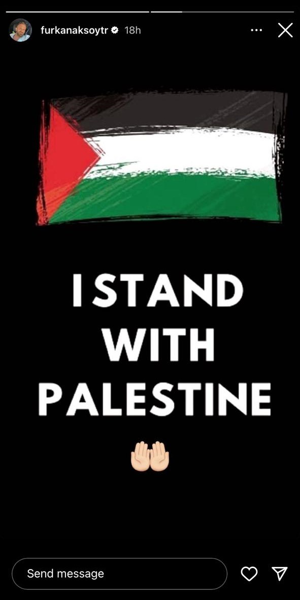 وأعلن الممثّل فوركان أكسوي أيضاً دعمه القضية الفلسطينية بنشره صورةً لعلم فلسطين كتب عليها: "أنا أقف مع فلسطين".