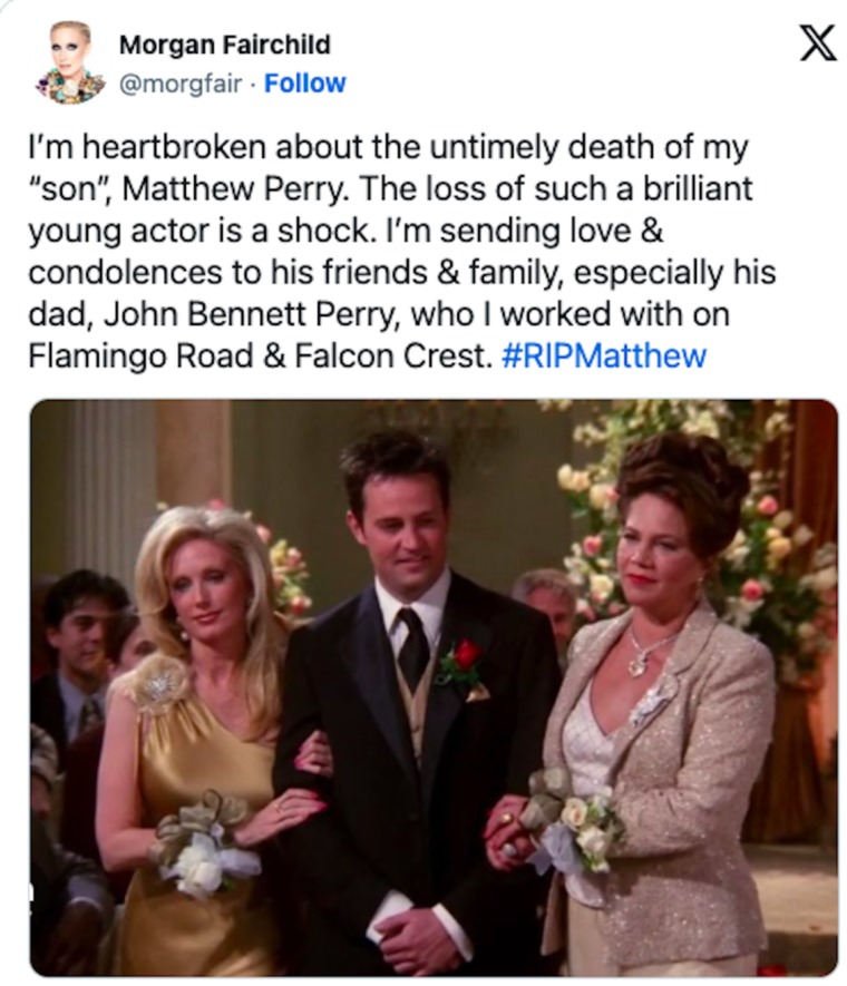 فبكلمات مؤثرة، نعى النجمان المشاركان في مسلسل "فريندز"، ماغي ويلر ومورغان فيرتشايلد، زميلهما ماثيو بيري.