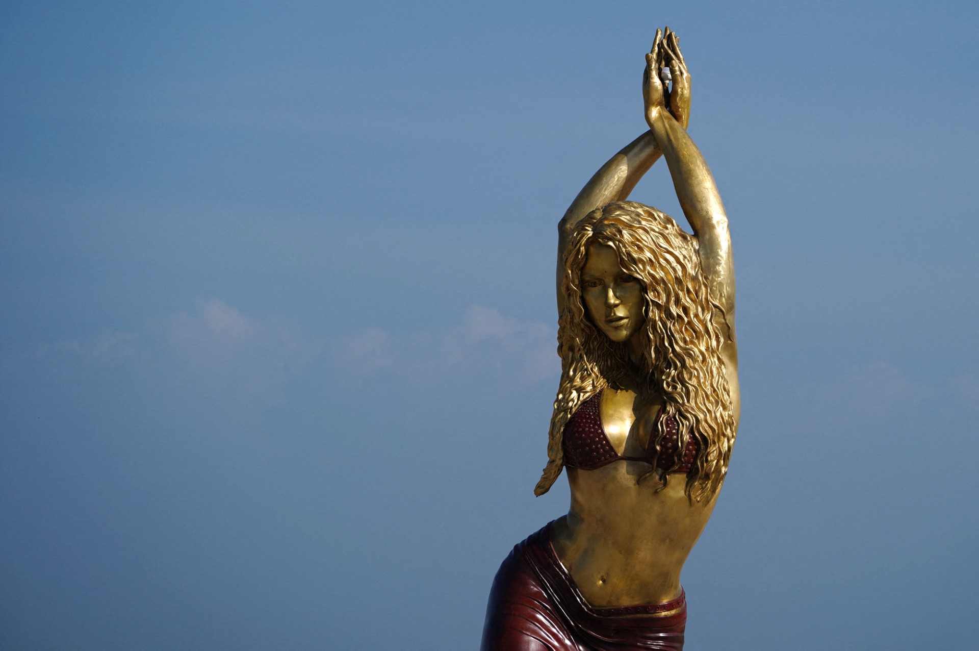 بذراعين متشابكتين فوق الرأس، وبطن مكشوف، ووسط مائل تجسيداً لحركة الورك الشهيرة، بات للمغنية الكولومبية الشهيرة شاكيرا تمثال دُشّن الثلثاء في مسقط رأسها في مدينة بارانكيا في كولومبيا.