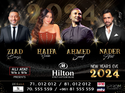 ويقيم فندق الـHilton Beirut Habtoor، حفلة رأس السنة، ويحييها مجموعة فنانين: هيفاء وهبي، أحمد سعد (من مصر)، زياد برجي، ونادر الأتات. وتراوح أسعار البطاقات ما بين 200 و800 دولار للبطاقة الواحدة.