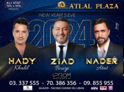 ويقيم الفنانون زياد برجي، نادر الأتات، وهادي خليل، حفلة رأس السنة في مطعم الأطلال بلازا. وتراوح أسعار البطاقات بين 175 و300 دولار للبطاقة.