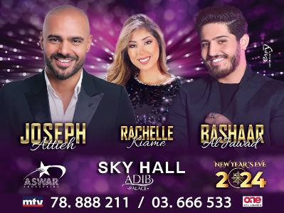 ويقيم الفنان جوزيف عطية، بشار الجواد، وراشيل قيامة، حفلة رأس السنة في مطعم أديب بالاس. ويبلغ سعر البطاقة 150 دولاراً.