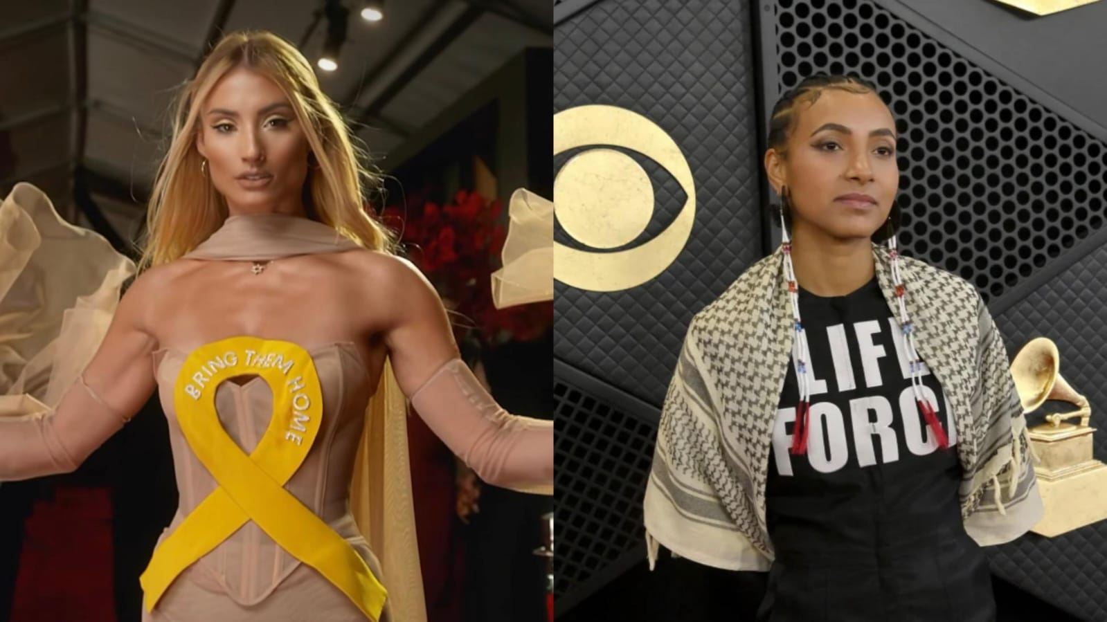 من جهتها، أظهرت المغنية وكاتبة الأغاني اليهودية مونتانا تاكر دعمها للإسرائيليين الذين ما زالوا محتجزين كرهائن من قبل "حماس" في غزة، في حفل توزيع جوائز "غرامي". ورفعت شعار: "أعيدوهم إلى المنزل".