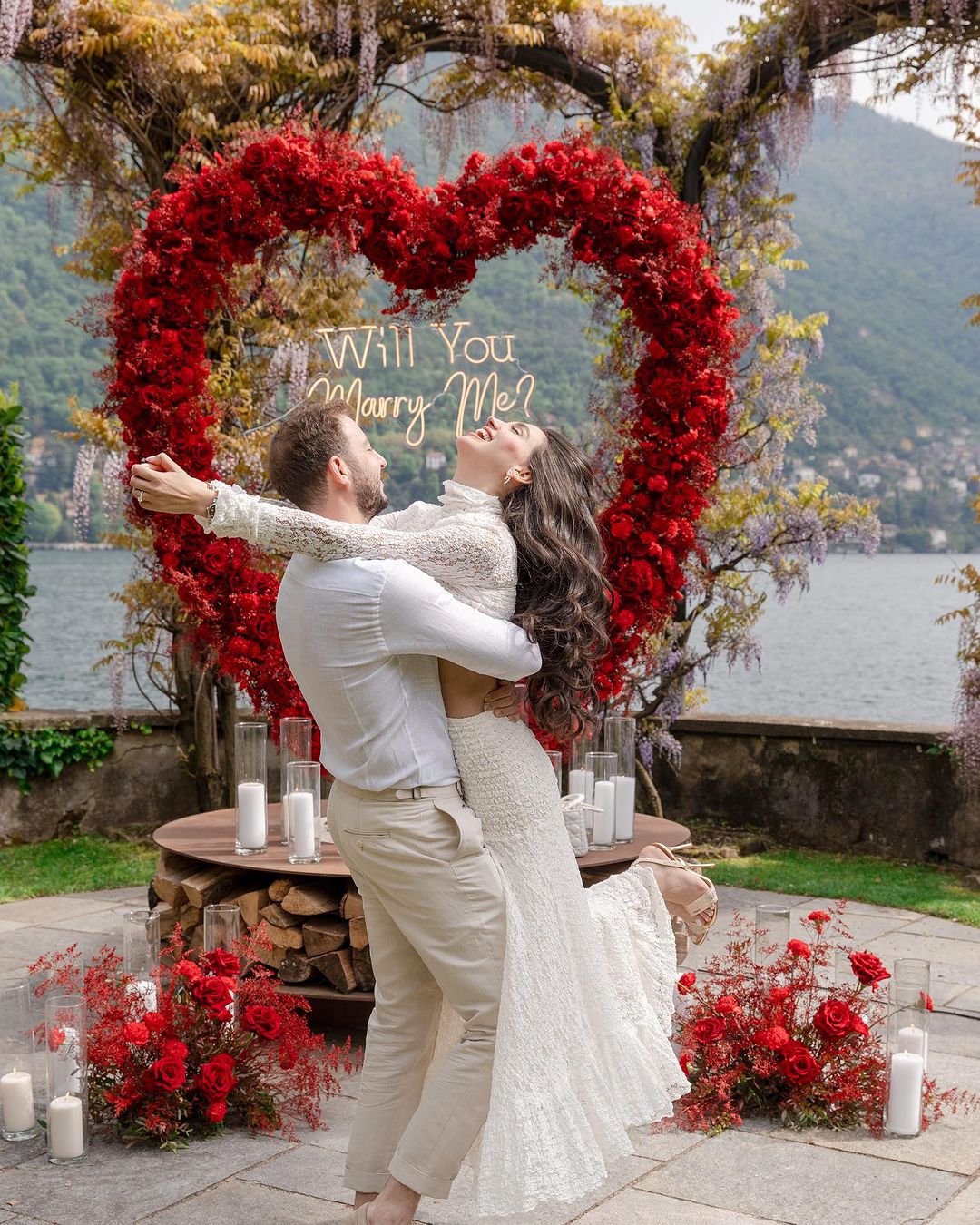 وشاركت تابت صوراً جديدة للّحظة التي طلب فيها حبيبها يدها للزّواج خلال تواجدهما على بحيرة كومو.