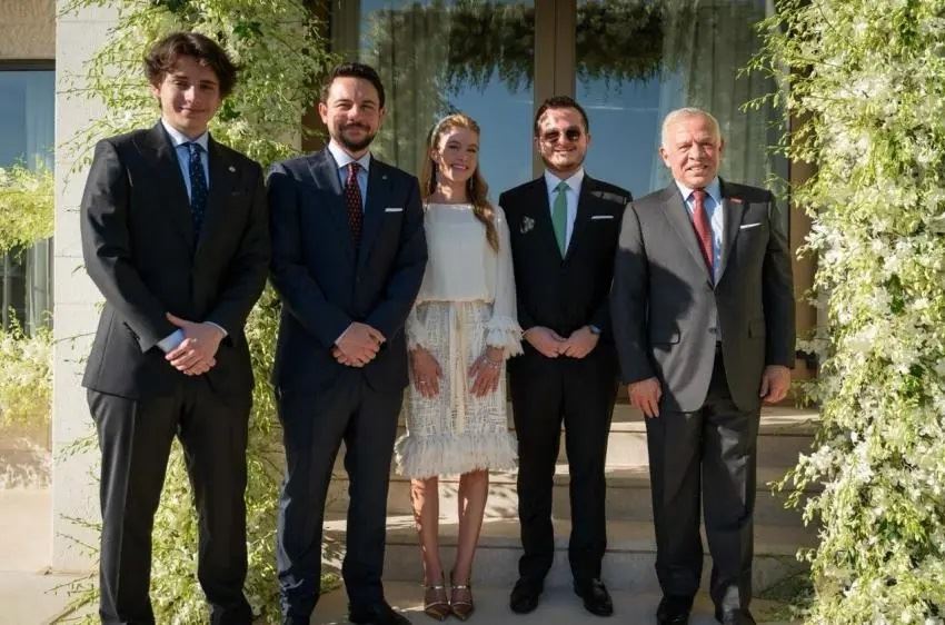 وظهرت الأميرة في الصور التي شاركتها مواقع أردنيّة، بإطلالة بسيطة وأنيقة باللون الأبيض، أمّا المفتي فظهر ببدلة رسميّة سوداء.