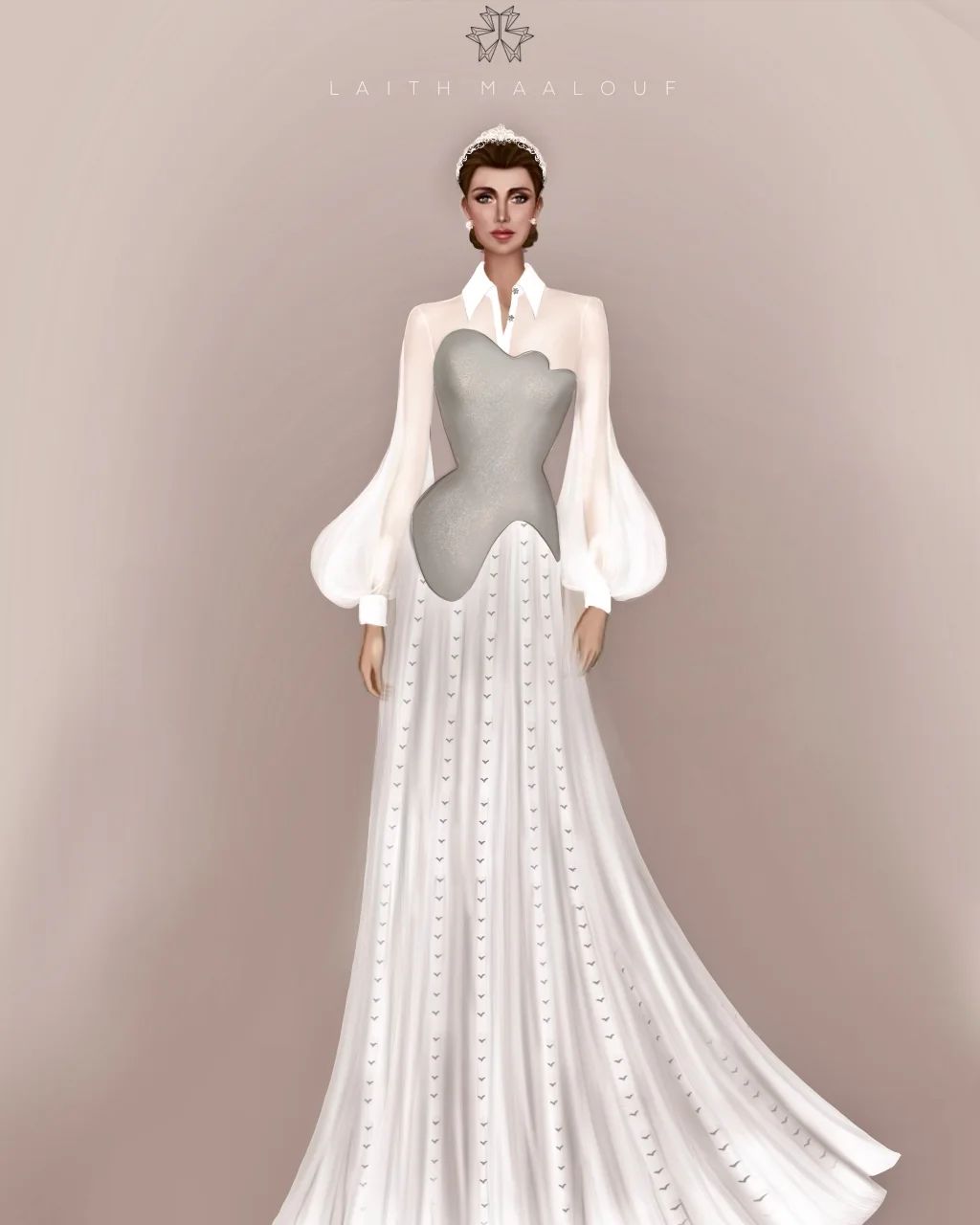 وأكثر ما يُميّز الفستان أنّه يعكس الكثير من تفاصيل التراث الأردني، انطلاقاً من الأزرار التي زيّنت القميص، وتدلّ على نجمة الأردن ذات السبع نقاط؛ وهي ترمز إلى الوحدة والأمل. أما الكورسيه الفضي، فيشير إلى الدرع للحماية والقوّة التي شهدها الأردن على مدى السنوات الخمس والعشرين الماضية. أمّا التنورة، فقد زُيّنت بسنابل القمح المُطرّزة يدوياً. ولا شكّ في أنّها من العناصر المتجذّرة بعمق في التراث الأردني. واكتملت إطلالة الملكة رانيا مع التاج الذي زيّن تسريحة شعرها في هذه المناسبة المرموقة.