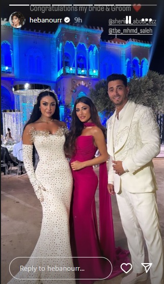 حرصت الممثلة هبة نور على حضور حفل زفاف زميلتها شيرين أبو العزّ ومحمد صالح، وشاركت متابعيها سلسلة من الستوريز عبر حسابها الرّسميّ في إنستغرام.