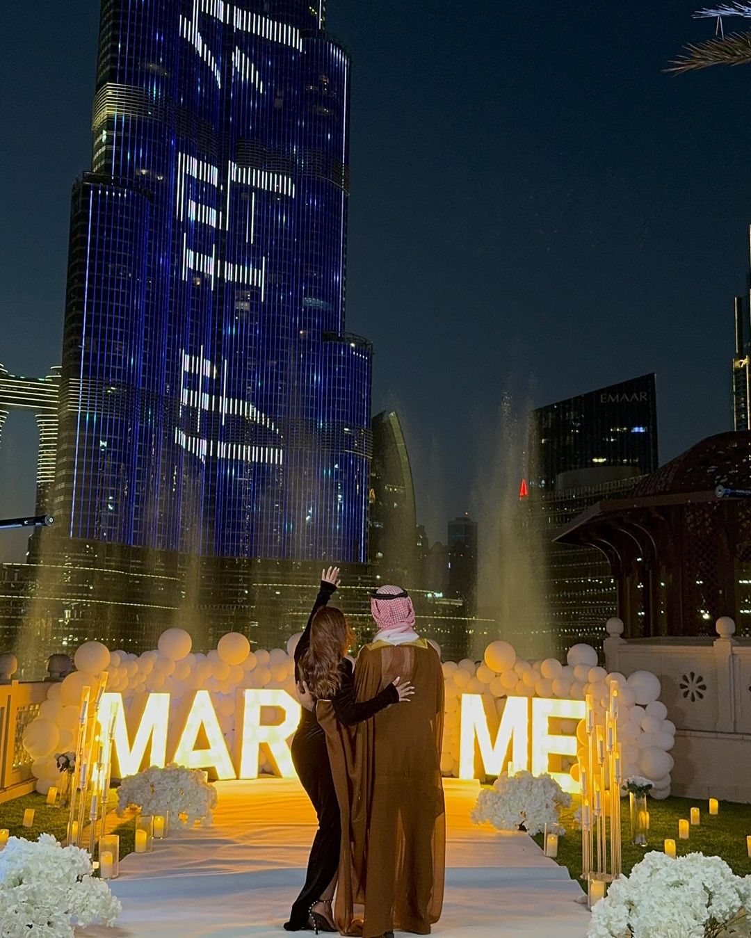 وشاركت نور عبر حسابها الرسمي في إنستغرام مقطع فيديو يوثق لحظة تقدم الشريف لها أمام برج خليفة، مع عبارة "هل تتزوجينني"، وأرفقته بتعليق جاء فيه: "لحظة العمر، أقول نعم للأبد".