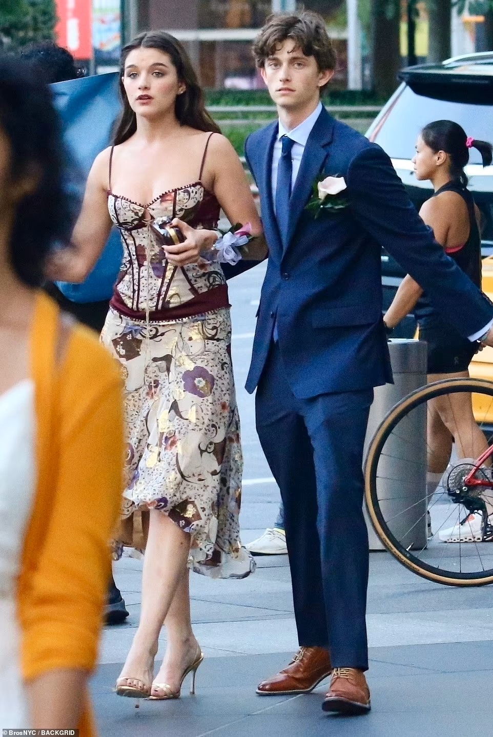 وظهرت كروز مع رفيق وسيم، شُبّه بوالدها، وهي تتحدّث إلى أصدقائها على الرصيف بينما كانت متجهة إلى سيارة تنتظرها.
