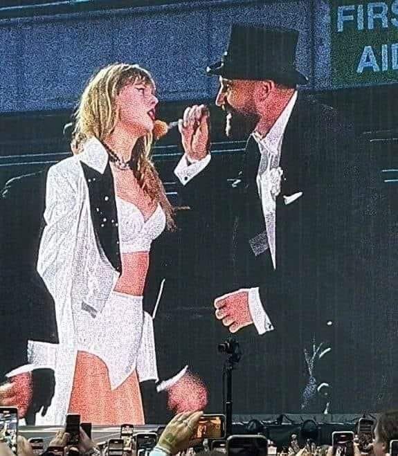 تايلور سويفت وترافيس كيلسي على المسرح.