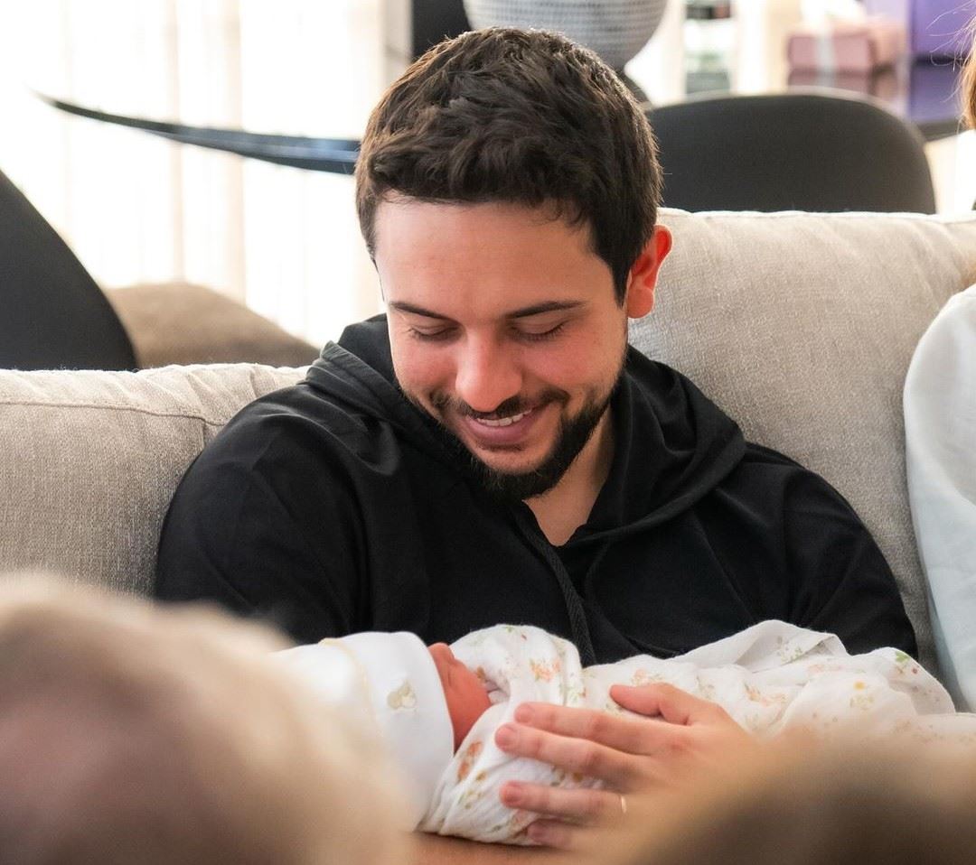 الأمير الحسين مع طفلته الأميرة إيمان.
