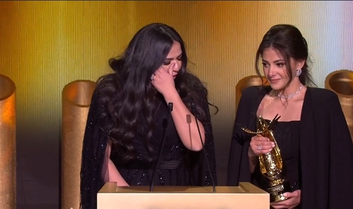 وفي لقطة مؤثرة صعدتا وتسلمتا الجائزة، وألقت كل منهما كلمة، لكنهما لم تستطيعا استكمالها بسبب حالة البُكاء التي دخلتا فيها بعد عرض الفيديو.