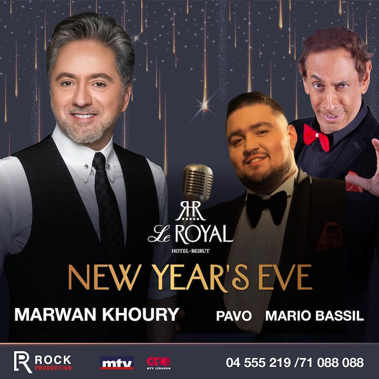 من جهة أخرى، يحيي في "أوتيل لو رويال" الفنان مروان خوري والكوميدي ماريو باسيل، حفلاً إلى جانب مغني الأوبرا بافو. أما بالنسبة لسعر البطاقة فيراوح بين 155 و235 دولاراً، ووصلت نسبة الحجوزات إلى 80 في المئة.
