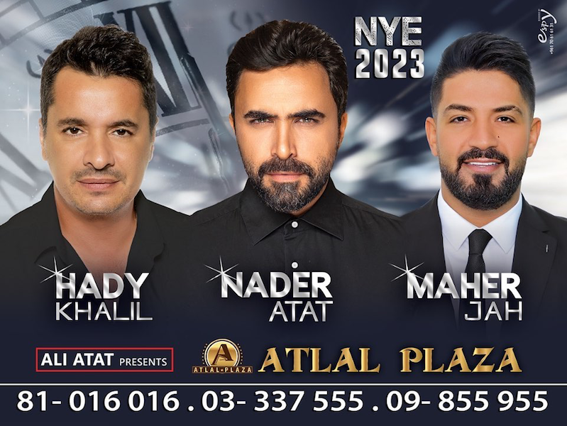 يستقبل "أطلال بلازا" العام الجديد بحضور الفنان نادر الأتات، هادي خليل وماهر جاه، ويراوح سعر البطاقة من 100 وصولاً إلى 250 دولاراً، وعلم أنّ جميع الحجوزات اكتملت.
