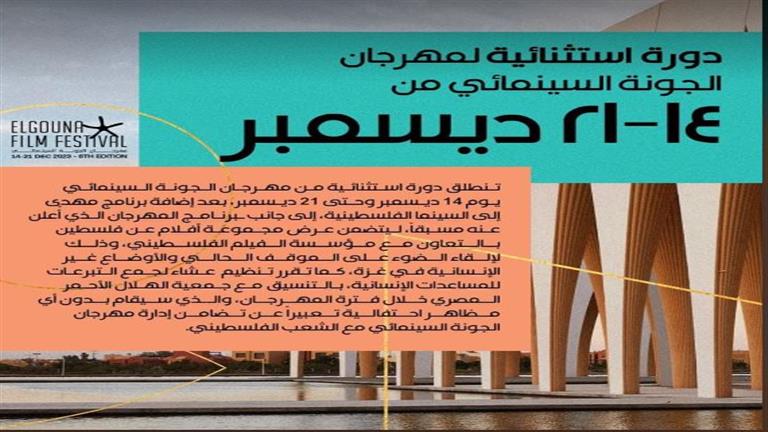 الدورة الجديدة، سوف تكون استثنائية كي تتماشى مع طبيعة الظروف والأحداث التي تمر بها الأراضي الفلسطينية، حيث ستتم إضافة برنامج جديد استثنائي بجانب الأصلي للمهرجان، سوف يتضمن عرض مجموعة من الأفلام الفلسطينية، على أن يكون ذلك بالتعاون مع مؤسسة الفيلم الفلسطيني، وتهدف تلك الفعالية لتسليط الضوء على المجازر التي يتعرض لها الفلسطينيون على يد قوات الجيش الإسرائيلي.