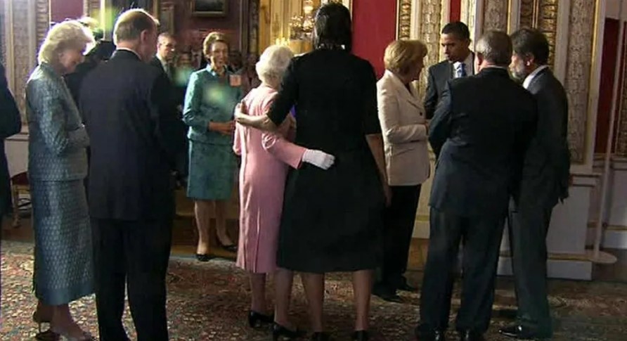 وذكّر موقع "فوكس نيوز" بأنها ليست المرة الأولى التي يتم فيها اختبار حدود البروتوكول الملكي؛ فخلال زيارة الرئيس الأميركي باراك أوباما قصرَ باكينغهام في عام 2009، وضعت ميشيل أوباما ذراعها حول الملكة إليزابيث. حينها، ابتسمت الملكة، وخرجت قليلاً عن البروتوكول ولفت ذراعها حول أوباما لفترة وجيزة كتعبير عن المودّة المعلنة، خصوصاً أنها كانت المرة الأولى التي تلتقي فيها الملكة بالأخيرة.