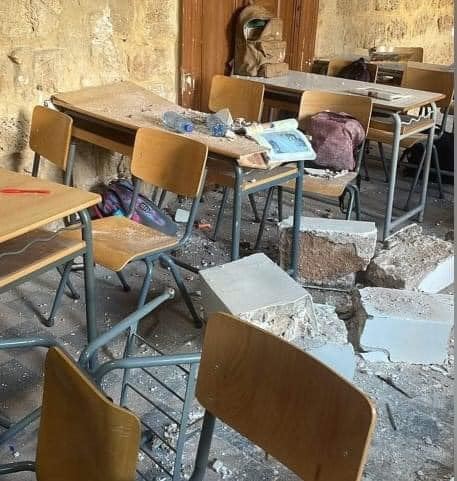 المدرسة التي سقط سقفها.