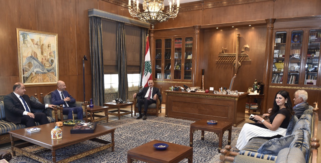 عرض رئيس مجلس النواب نبيه بري مع الأمين العام المساعد لجامعة الدول العربية السفير حسام زكي والوفد المرافق له، الأوضاع العامّة وآخر المستجدّات.