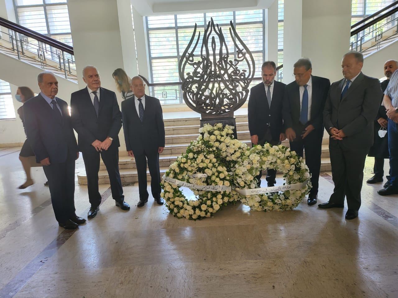 وكان قد سبق زيارة قصر العدل في صيدا، وقفة رمزية أمام النصب التذكاري في باحة الخطى الضائعة في قصر العدل - بيروت ووضع اكاليل من الزهر، شارك فيها كل من وزير العدل، ورئيس واعضاء مجلس القضاء الأعلى، والمدير العام لوزارة العدل، ونقيب المحامين في بيروت، ورئيس رابطة قدامى القضاة.