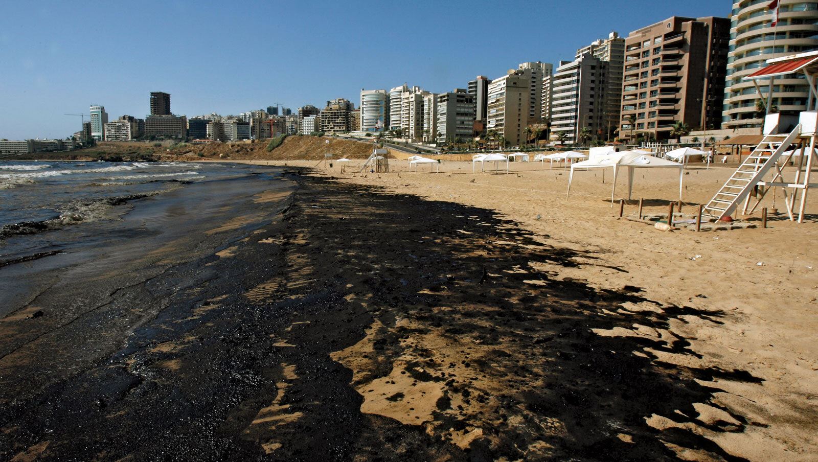 الكارثة البيئية التي سبّبها عدوان 2006 على خزانات النفط في الجية (أ ب).