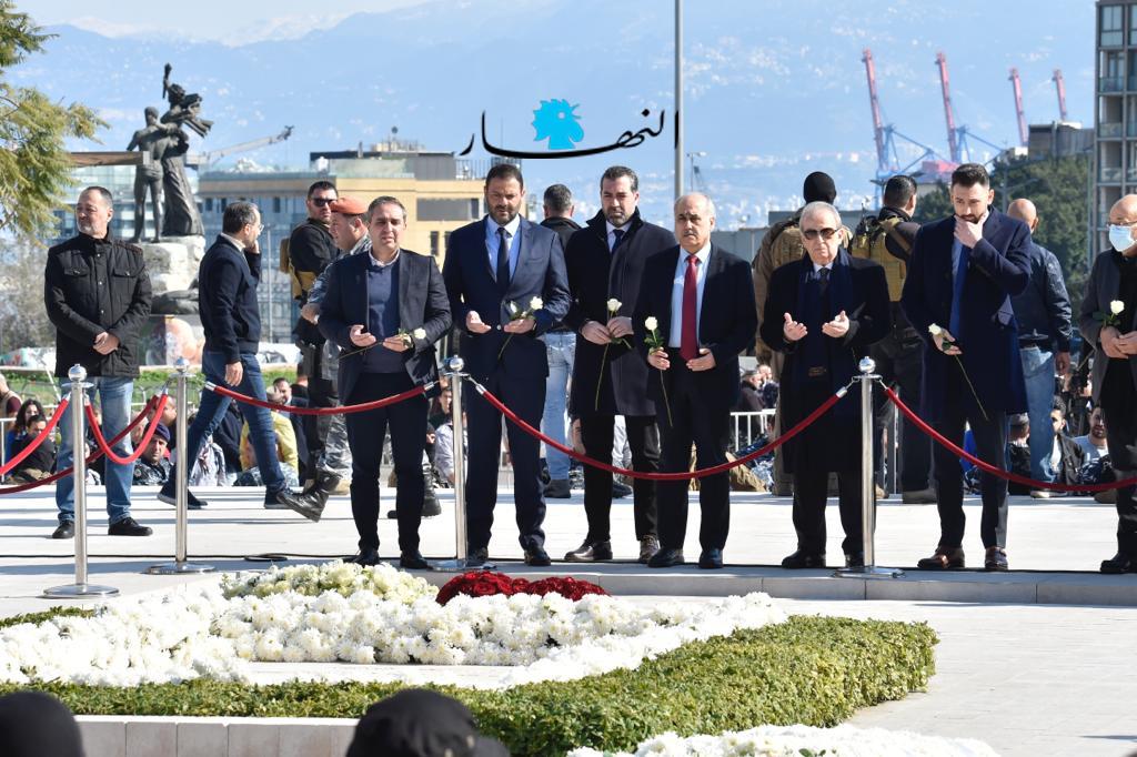 الحريري الذي غادر البلاد بعد اعتكافه عن ممارسة العمل السياسي، حضر إلى بيروت للمشاركة في إحياء الذكرى. وعند الساعة الواحدة من ظهر اليوم، وصل الحريري إلى الضريح، ترافقه النائبة السابقة بهية الحريري، وشقيق الشهيد شفيق الحريري، إلى جانب وفود سياسية وديبلوماسية وشعبية حضرت من عدد من المناطق. وقد شهدت العاصمة بيروت انتشاراً أمنياً كثيفاً للمناسبة.