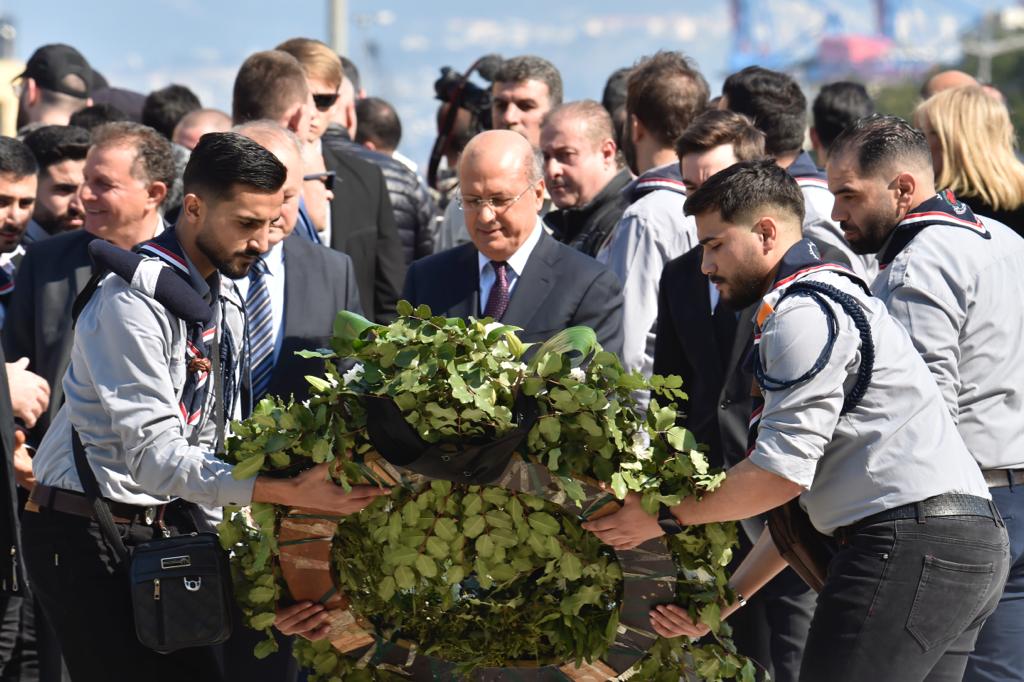 وبعد قراءة الفاتحة، ألقى الحريري التحية على الحاضرين، وقال في تصريح مقتضب: "الله يرحم الشهيد والله يعين لبنان".