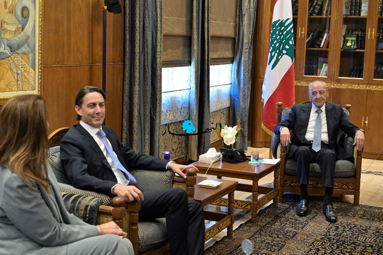 استقبل رئيس مجلس النواب نبيه برّي في مقر الرئاسة الثانية في عين التينة الوسيط الأميركي لترسيم الحدود البحرية الجنوبيّة آموس هوكشتاين بحضور السفيرة الأميركية دوروثي شيا، وأكّد برّي بأنّ ما تبلّغه من رئيس الجمهورية ميشال عون في موضوع الحدود البحرية وحقوق لبنان باستثمار ثرواته النفطيّة هو متّفق عليه من اللبنانيّين كافّة.