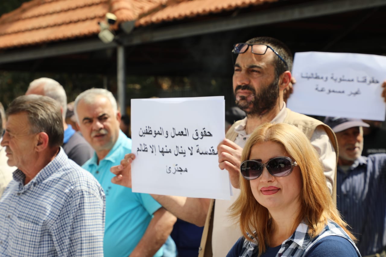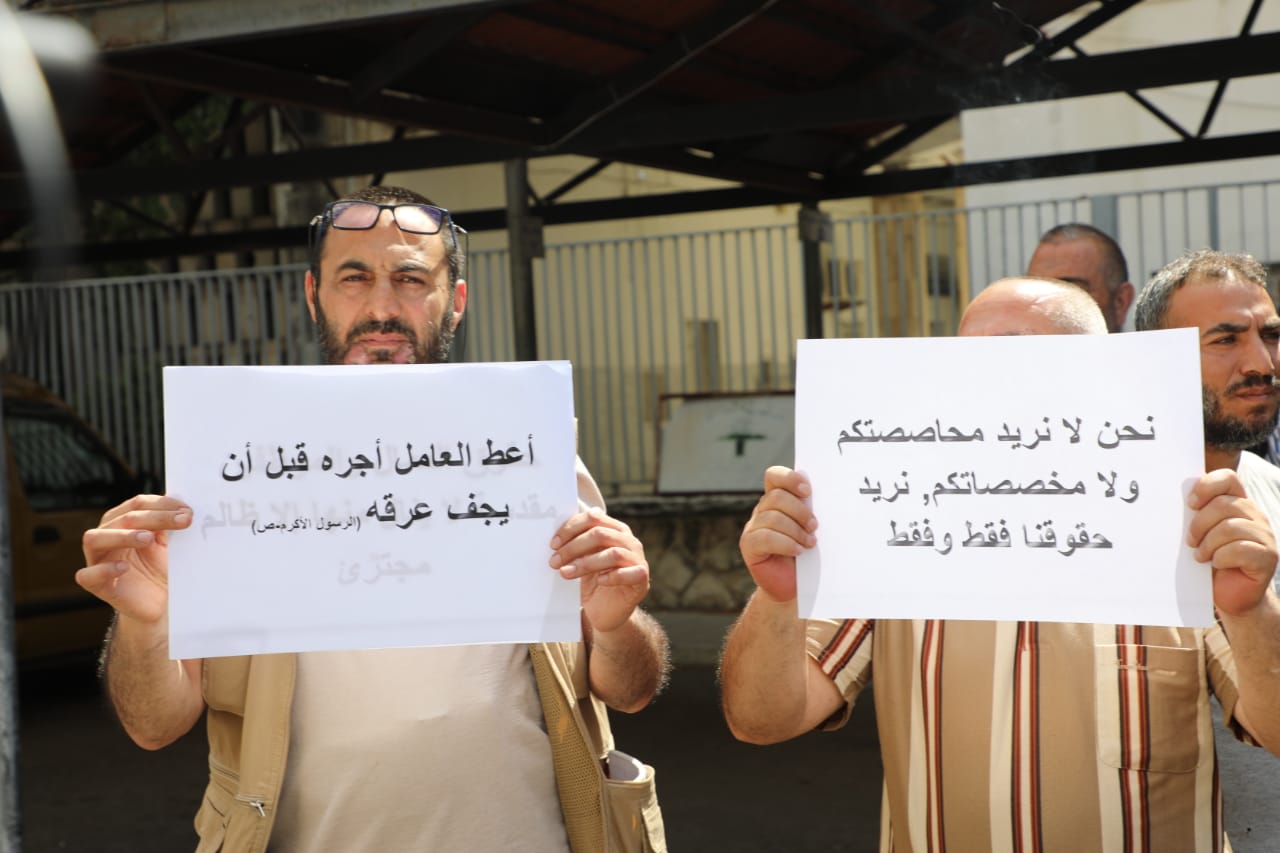 وقفة احتجاجية لعمال وموظفي بلدية النبطية.