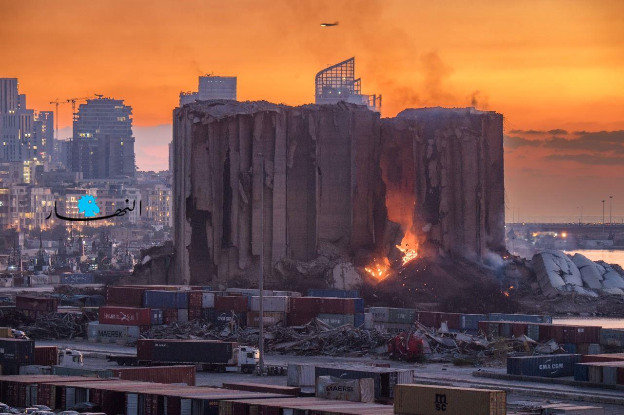 الحريق مستمر في أهراء مرفأ ييروت (نبيل اسماعيل).