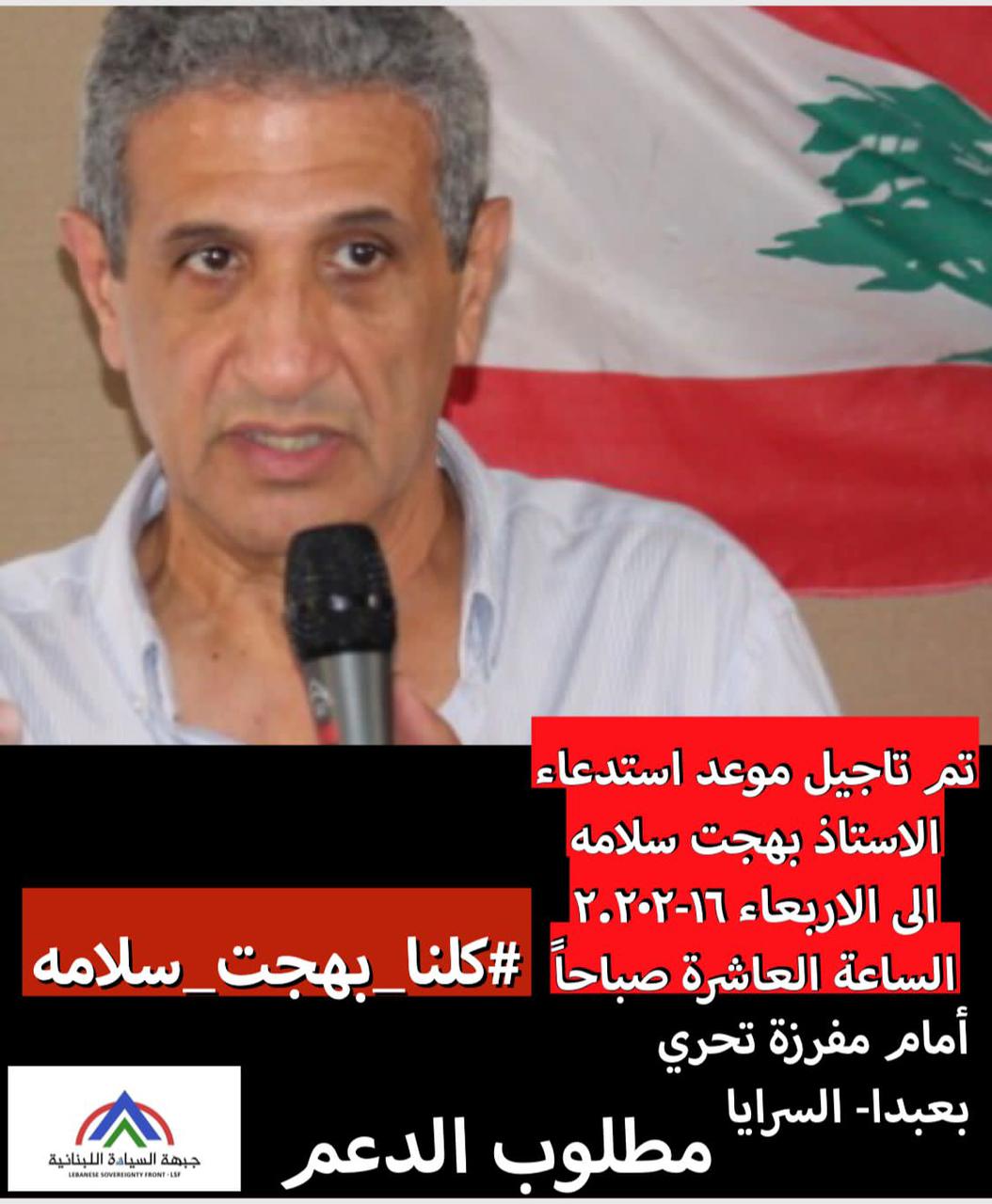 ودعت جمعيات عدّة في المجتمع المدنيّ، وتلك التي ترفع شعارات سيادية، إلى الاعتصام غداً تضامناً مع سلامة في وجه الظلم ومحاولات إسكات الأصوات المعارضة.