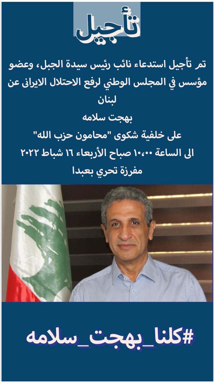 تخطّى بعض الدعاوى القضائية أزمة المسار البيروقراطيّ الطويل المعتمد عادة في القضاء اللبناني، وأزمة الإضرابات والاعتصامات، لتتقدّم وتأخذ مجرى سريعاً. وهذا ما حدث بالفعل مع نائب رئيس "سيّدة الجبل"، العضو المؤسّس في "المجلس الوطني لرفع الاحتلال الإيراني عن لبنان"، بهجت سلامة، الذي استُدعي إلى التحقيق، بدعوى مقامة من أحد محامي "حزب الله" على خلفيّة الاعتصام التضامنيّ مع النائب السابق فارس سعيد.
