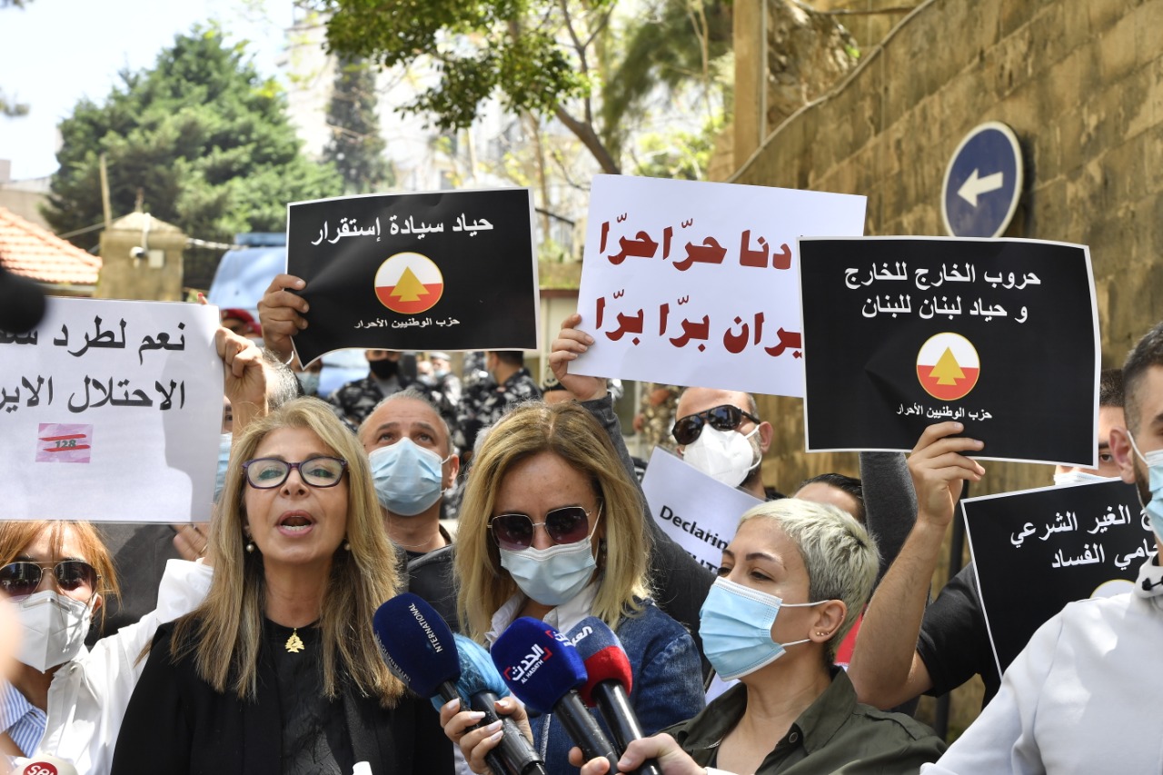 وتلت المحامية غريس مبارك بيانا قالت فيه: "نحن المجموعات السيادية المنبثقة من ثورة 17 تشرين، المؤمنون بالسيادة والحرية والاستقلال، نقف هنا اليوم لنعلي الصوت، من أمام وزارة الخارجية، صرح الديبلوماسية اللبنانية، الغافلة والمتخاذلة عن تطبيق القوانين والمعاهدات الدولية. وقبولها دون اعتراض رفض السفير الإيراني تلبية استدعائه بعد التصريحات المسيئة للسيادة الوطنية التي أدلى بها قادته، ضاربا عرض الحائط كرامة لبنان وهيبته وسيادته، لهو خير تعبير عن سياسة التفريط بحقوقنا والخضوع التي تمارسها السلطة وشوهت وجه لبنان ودمرت مرفأه ونصف عاصمته وسخرت اقتصاده وودائع أهله لخدمة المحور الإيراني، ولطخت سمعته وحطمت صداقاته، وعزلته عن جواره العربي ومحيطه الإقليمي والعالمي".