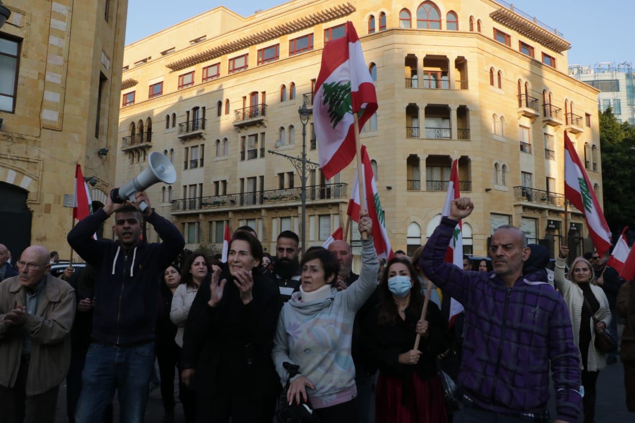 مشهد من الاعتصام أمس أمام مجلس النواب (حسن عسل).