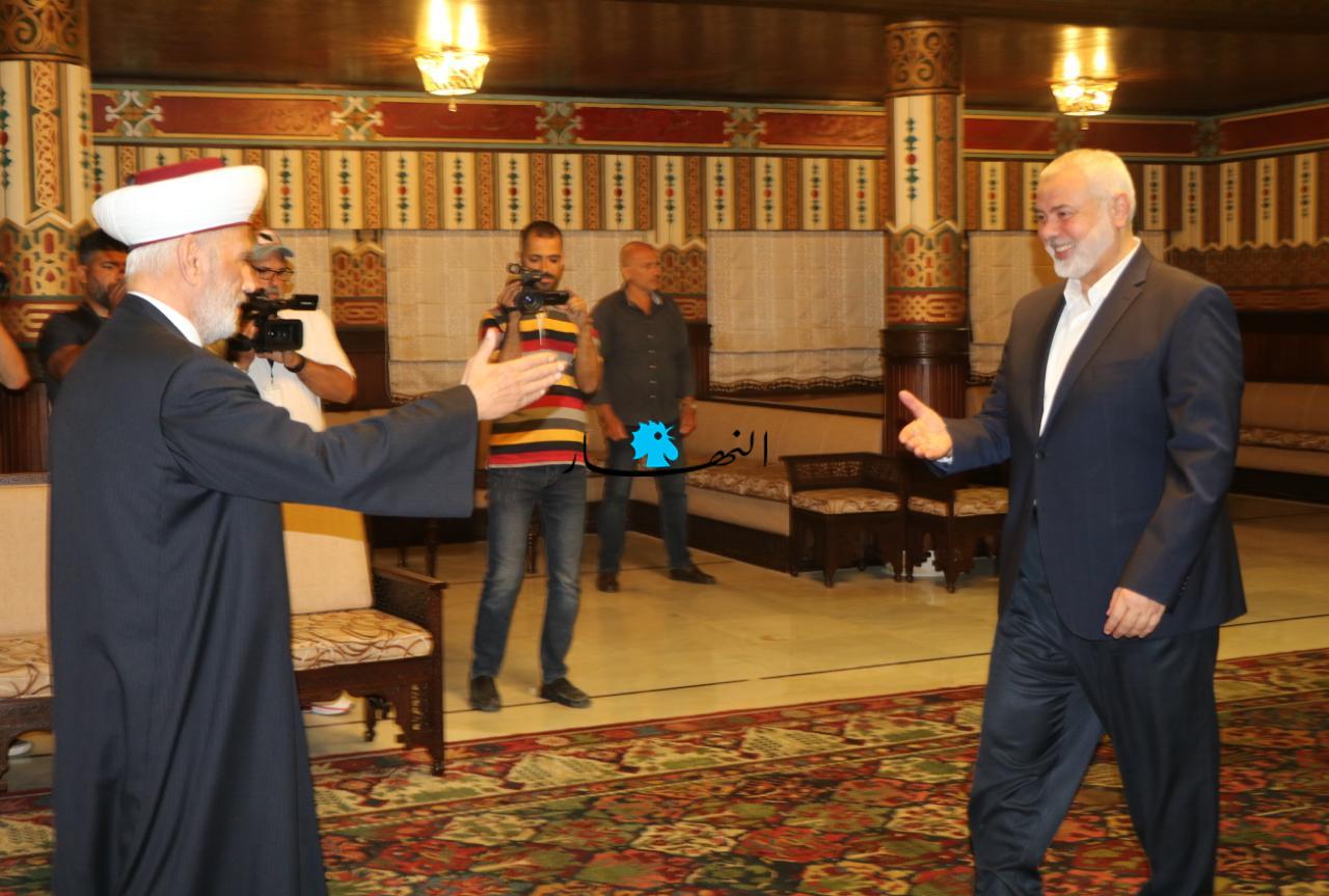 استقبل مفتي الجمهورية اللبنانية الشيخ عبد اللطيف دريان في دار الفتوى وفداً من حركة حماس برئاسة رئيس المكتب السياسي في الحركة إسماعيل هنية.