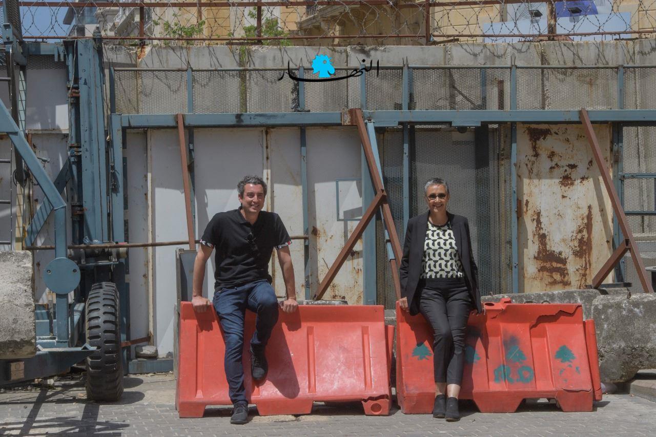 النائبان مارك ضو ونجاة صليبا أمام الجدار الفاصل في محيط مجلس النواب (نبيل إسماعيل).