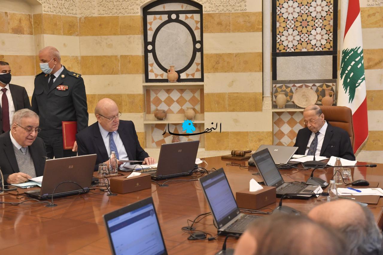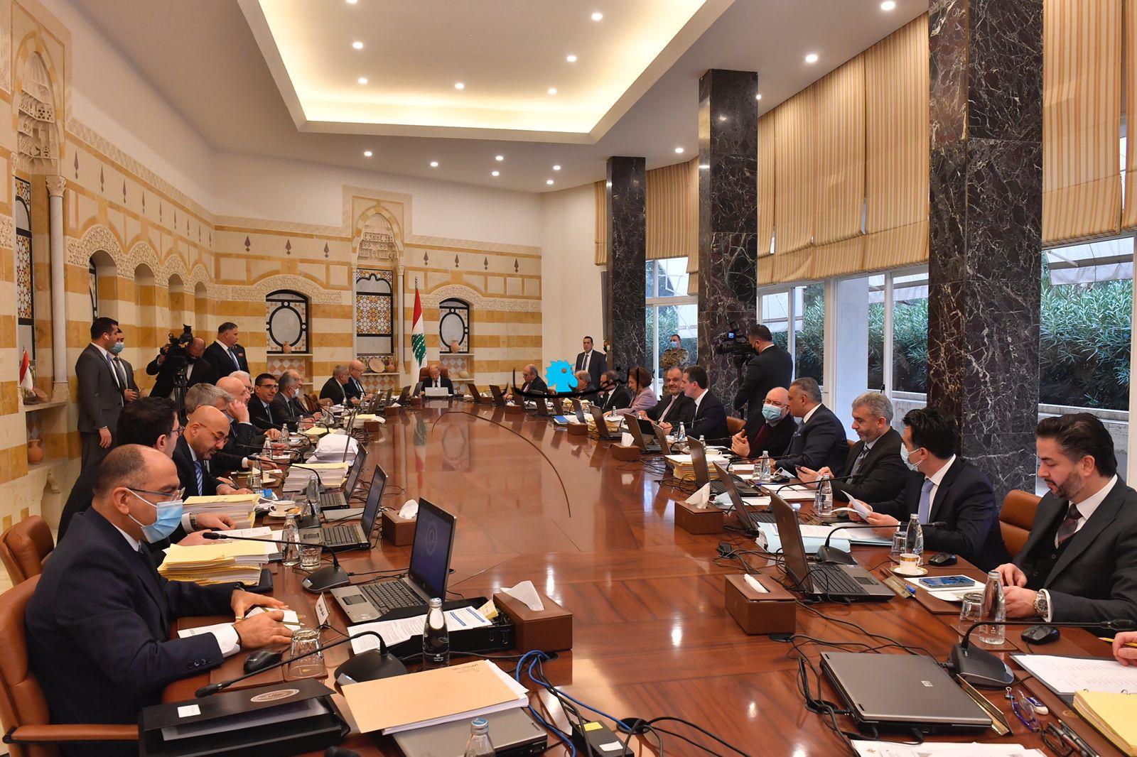 وبحث مجلس الوزراء في جدول أعمال من 56 بنداً إضافة إلى بنود طارئة لاتخاذ القرارات المناسبة بشأنها وأبرزها: مشروع قانون الموازنة العامة، مشروع قانون يرمي إلى اجازة جباية الواردات كما في السابق وصرف النفقات اعتباراً من أول شباط 2022 ولغاية صدور قانون موازنة العام 2022 على أساس القاعدة الاثنتي عشرية، مشروع قانون الموازنة العامة للعام 2022، الموافقة على تمديد العمل بالملاكات الموقتة وبمفعول قرارات وعقود الموظفين الموقتين والمتعاقدين بمختلف تسمياتها وتواريخ توقيعها وبالشروط التعاقدية السابقة عينها والمتعاملين، وعقود استخدام الأجراء في الادارات العامة والمؤسسات العامة والبلديات واتحادات البلديات لمدة أقصاها 31/12/ 2022، اضافة الى بنود لها طابع اجتماعي ومعيشي ووظيفي على سبيل التسوية، وتعيين الهيئة الوطنية لمكافحة الفساد.