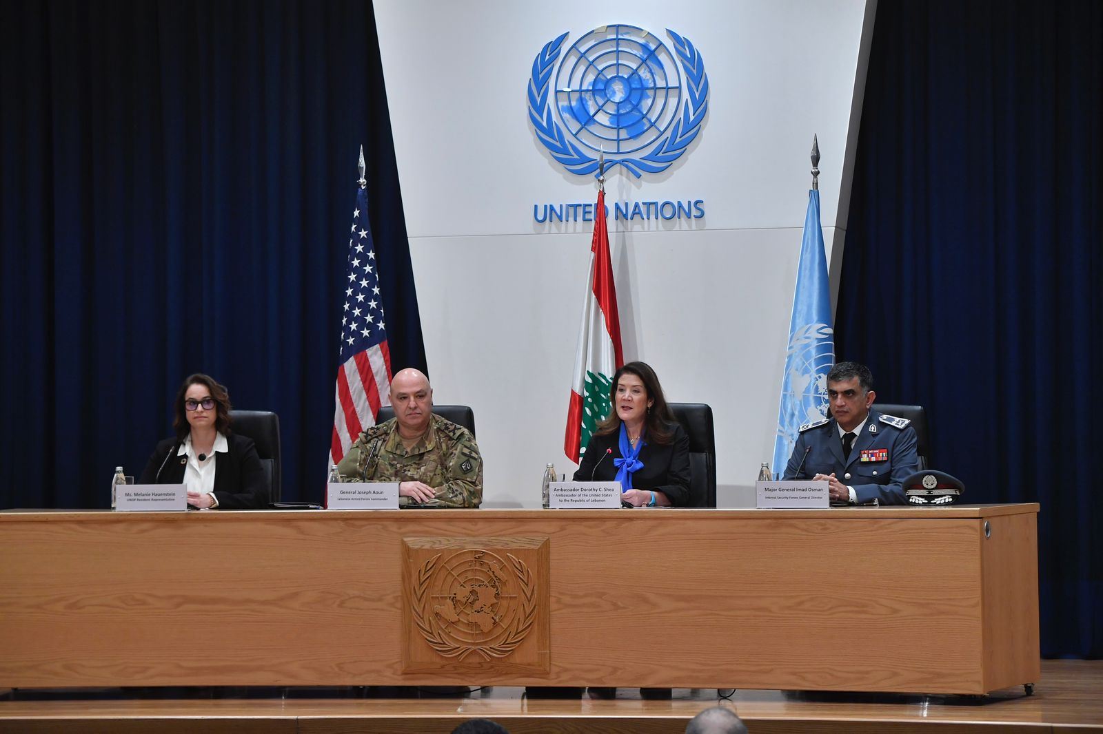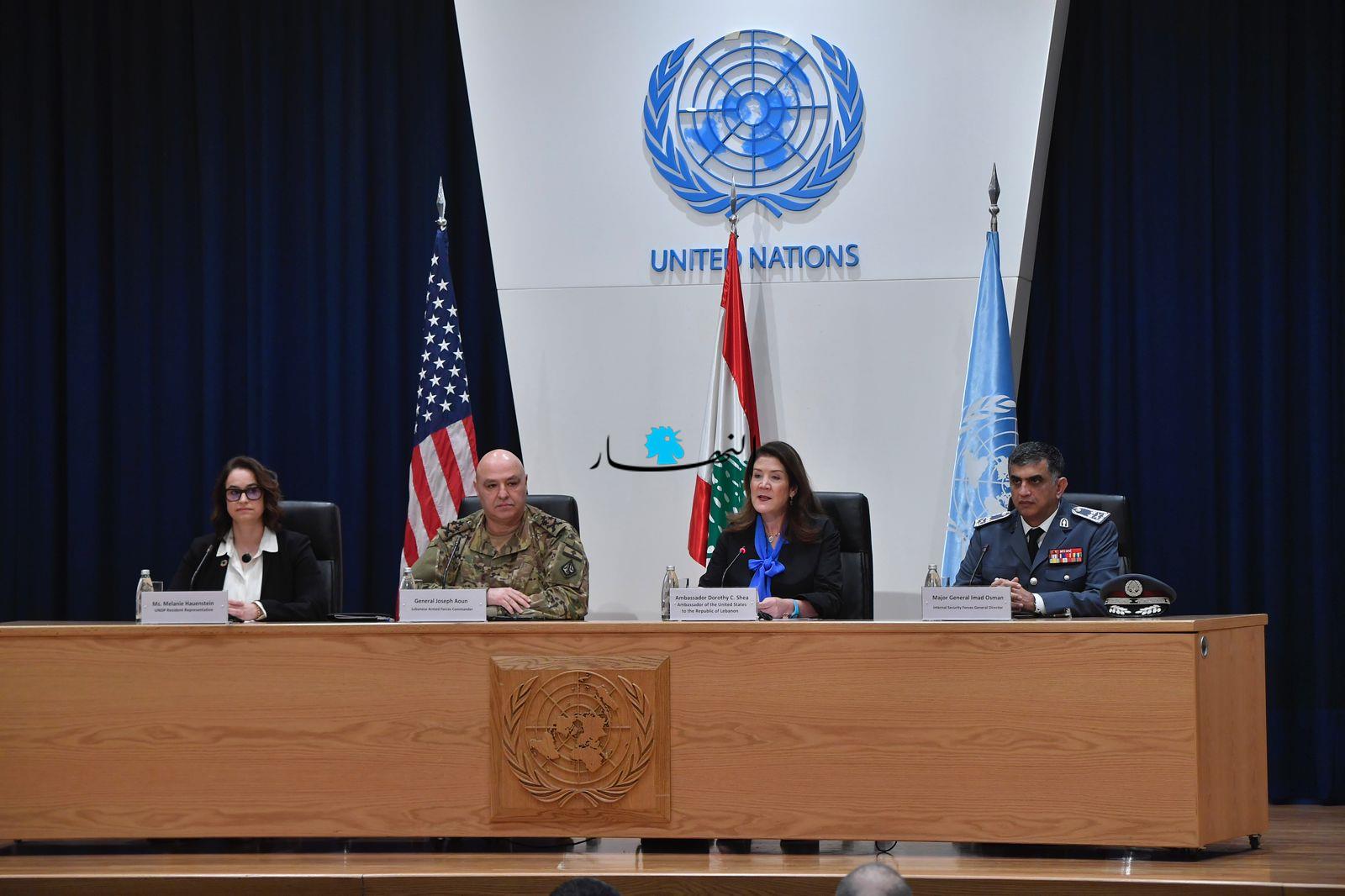 بحضور سفيرة الولايات المتحدة الأميركية في لبنان دوروثي شيا، قائد الجيش العماد جوزاف عون، والمدير العام لقوى الأمن الداخلي اللواء عماد عثمان، تم إطلاق برنامج دعم عناصر الجيش اللبناني وقوى الأمن الداخلي، الذي يستضيفه برنامج الأمم المتحدة الإنمائي بالشراكة مع السفارة الأميركية في بيروت والجيش اللبناني وقوى الأمن الداخلي، في مبنى الإسكوا، وسط بيروت.