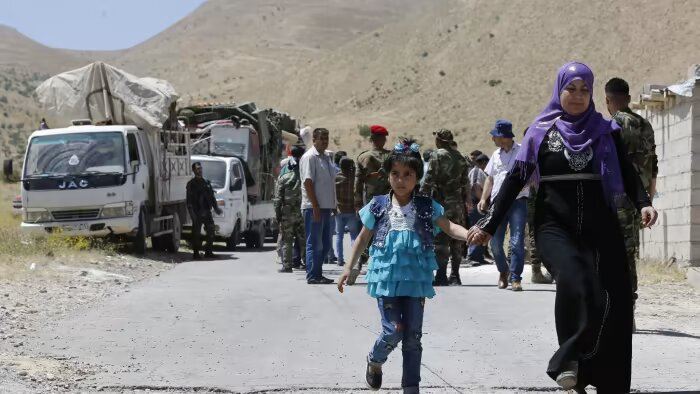 صورة ارشيفية- لاجئون سوريون يصلون إلى بلادهم من بلدة عرسال الحدودية اللبنانية (أ ف ب).
