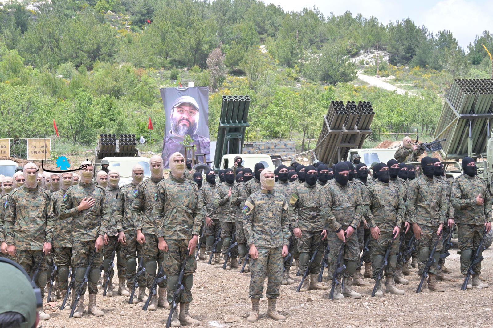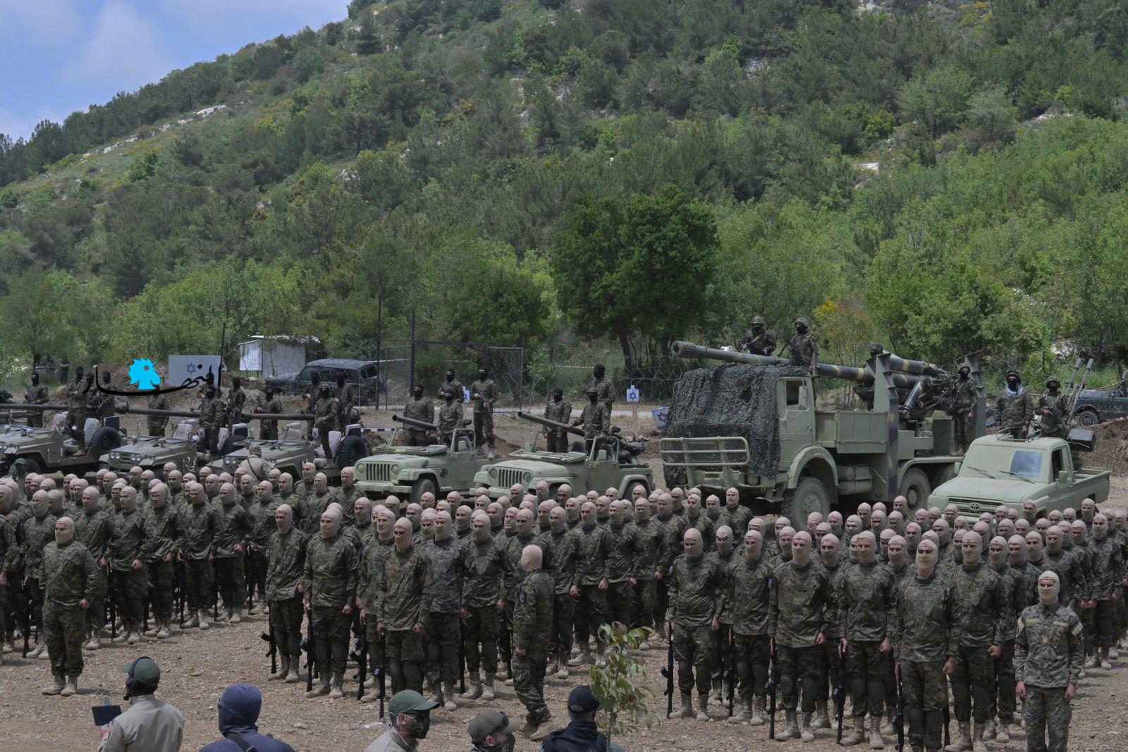 عناصر من "حزب الله" خلال المناورة العسكرية. (نبيل اسماعيل)