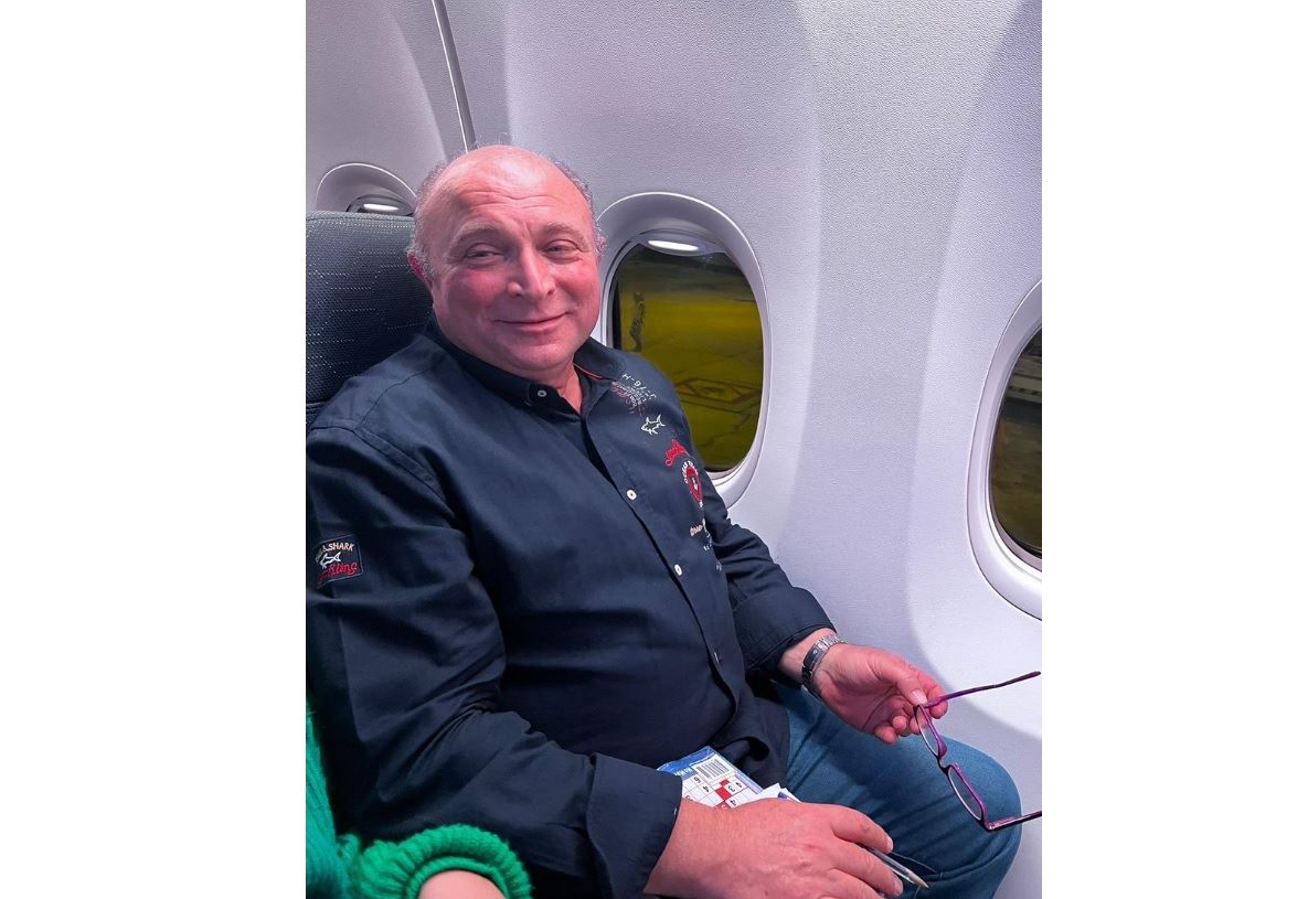زياد العوف في الطائرة لدى توجّهه إلى الولايات المتحدة.