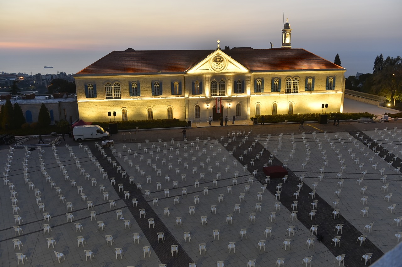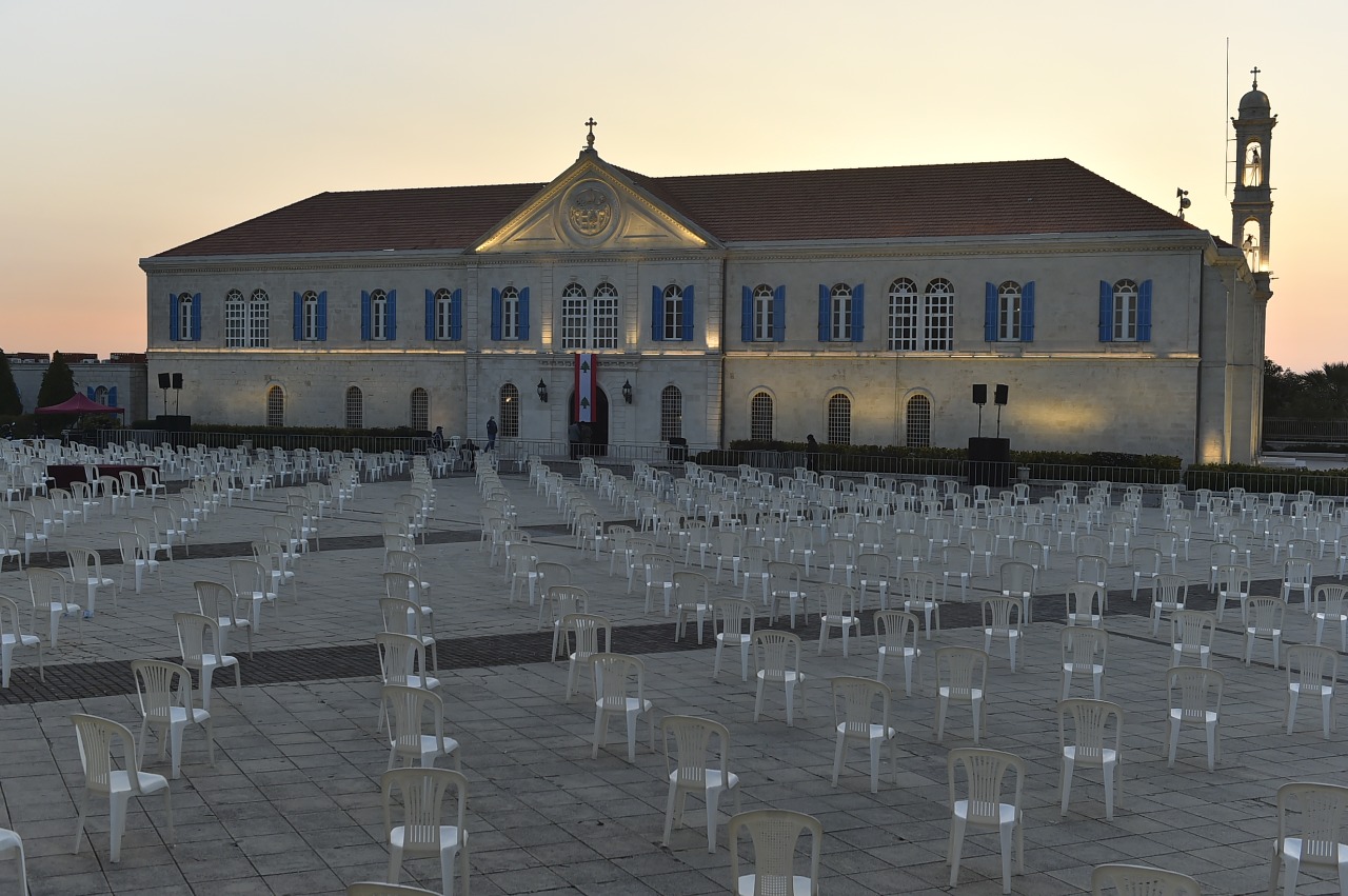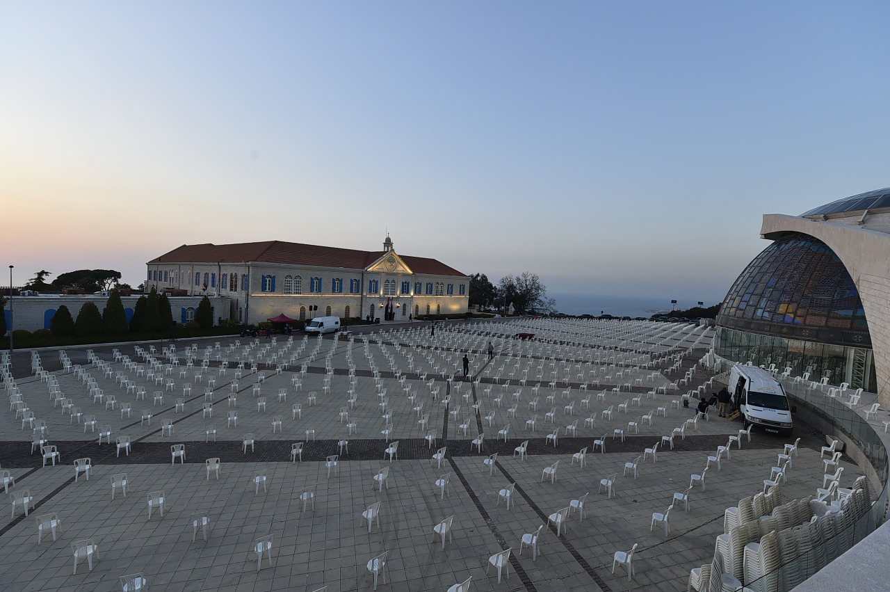 تتواصل التحضيرات في بكركي للاستقبال الشعبيّ غداً السبت، وقد تمّ وضع الكراسي في الساحة الخارجية، كما خُصّص مكان لتعقيم الحاضرين تفادياً لانتشار كورونا.
