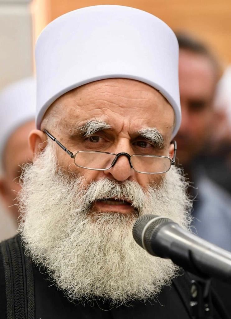 أضاف: "إننا إذ نجتمع اليوم للصلاة والدعاء، فلا بدّ لنا من توجيه تحيةٍ من هذا المكان الطاهر وفي هذه الأيام المباركة إلى أهلنا الشرفاء في الجولان الأبيّة، تقديراً لانتفاضتهم الشعبية دفاعاً عن وجودهم وأرضهم، واعتزازاً بوقفتهم البطولية واستماتتهم في الانتصار لكرامة الأرض المجبولة بعرق الآباء والأجداد ودمائهم. تحيةً إلى أهلنا الأكارم في هضبة الجولان، المتمسكين بهويتهم التوحيدية المعروفية والراسخين بانتمائهم الإسلاميّ والعربيّ، تحيةً لهم شيوخاً أجلّاء ورجالاً أشدّاءَ وأخوةً أعزّاء".