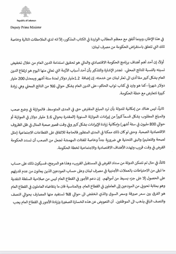 وأبدى الشامي، بعض الملاحظات على مطالب نواب الحاكم خصوصا تلك المتعلّقة باستقراض الحكومة من مصرف لبنان.